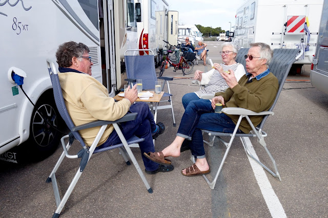 Därefter körde vi mot ställplatsen i Los Alcazares, det ligger lite ovanför Cartagena, där vi bokat plats. Idag hittade vi helt utan några omvägar, vi är så imponerade av oss själva haha! Vägnätet fortsätter dock att få oss lite nervösa, alltså vi kommer aldrig att glömma alla rondeller, helt otroligt. Vi kom på plats på Camping Area Narejos, ett rätt mysigt ställe och det kändes så skönt. Vi trodde att Ulla och Bernt redan var på plats, men nej, de hade tyckt att det var trevligt med lite extra sightseeing (hahaha). Vi satte oss i solen och tog en fika, alltså mycket bättre väder idag, 18 grader men lite väl vindigt. När äntligen Ulla och Bernt kom ville de ha en GT efter all körning, de var ändå vid gott mod, så det blev ett trevligt samkväm.