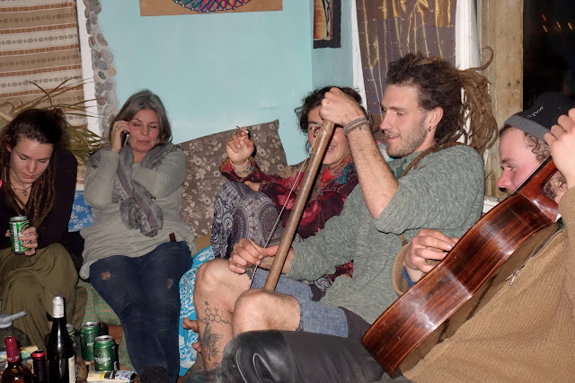 Under tiden vi satt där kom den svenska tjejen igen och hälsade oss välkomna in i huset mellan fem och sju där det serverades mat och dricka. Där fick man lämna en donation så mycket man ville. Efter att ha vilat en stund gick vi dit, massor av god vegetarisk mat och många goa människor. Jag älskar att få vara med om sådana oväntade saker och det var så roligt att prata med de som var där.