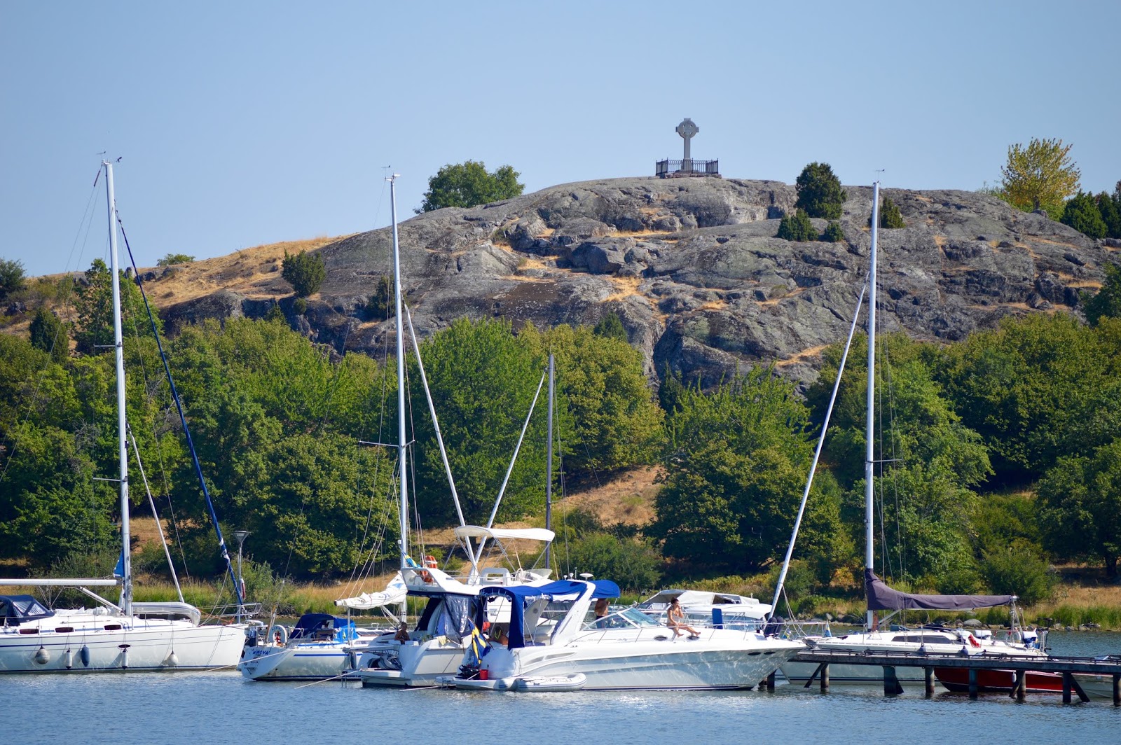 Jag fick sitta ett tag i skuggan innan vi promenerade i hettan tillbaka till Boris. Sammantaget om Birka kan vi väl säga att vi hade lite större förväntningar, trodde att vi skulle kunna se mer av utgrävningarna, men det är ju ändå vår svenska historia så vi var nöjda. Vi har alltid velat se Birka och nu behöver vi inte tänka mer på det. Vi orkade inget mer denna dag! Jo, jag kan tillägga att det kom en regnskur ikväll som varade sådär 5 minuter!